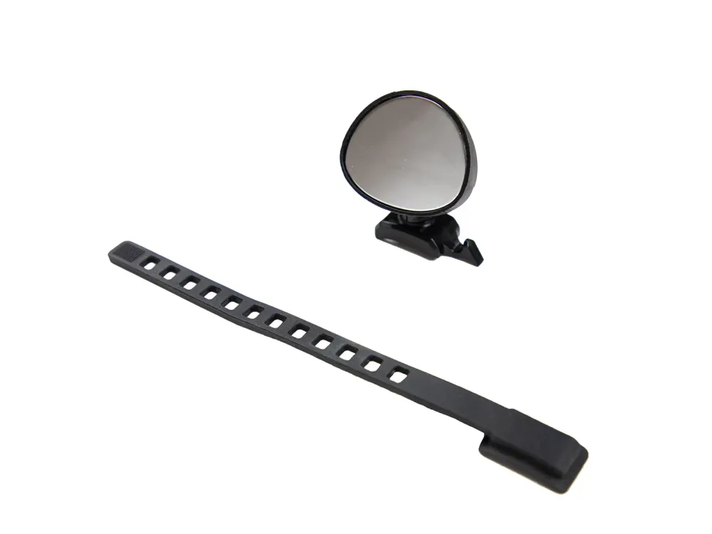 Mycket liten smidig spegel som monteras med gummistropp på styret, eller annat passande ställe 22-60mm, justerbar på alla håll. Konvext glas 50*40mm
