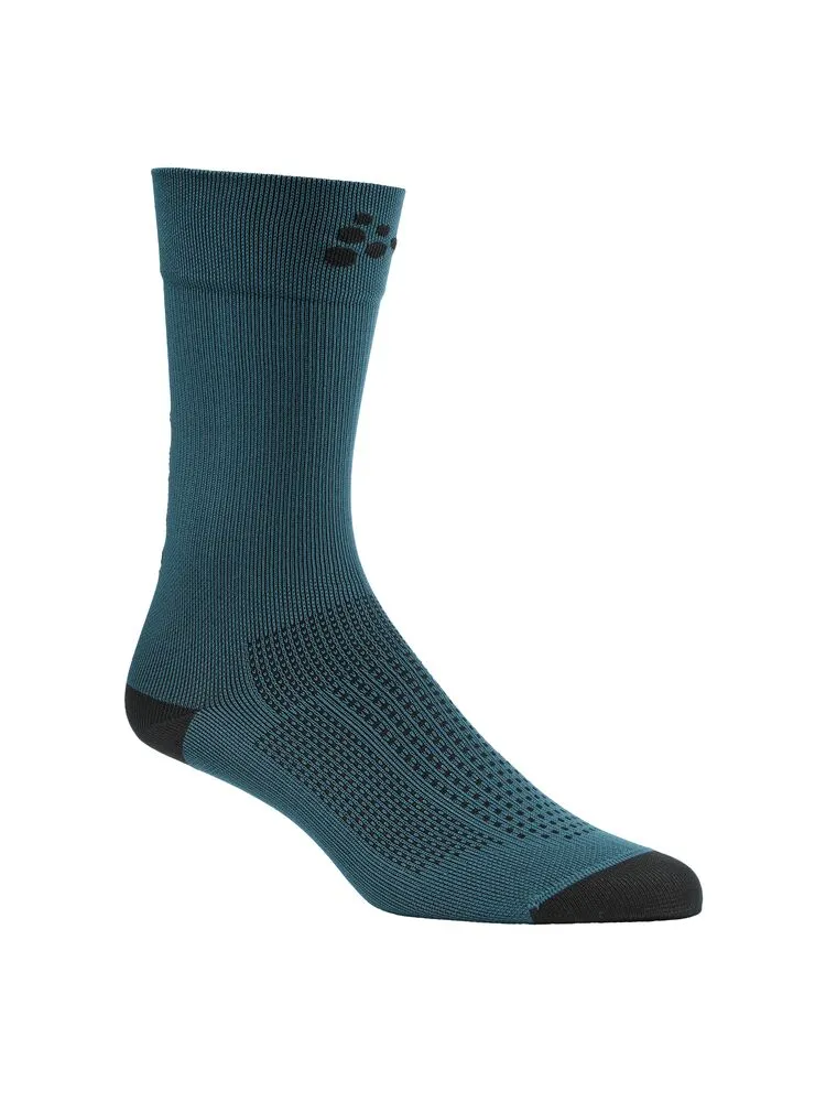 Craft Core Endur Bike Sock är en funktionell cykelstrumpa i återvunnen polyamid med ventilerande meshpaneler som ger bra temperaturreglering vid cykling i varma förhållanden. Strumporna har även ergonomiskt formade ribbor runt hålfoten, breda elastiska muddar och förstärkning i tå och häl.