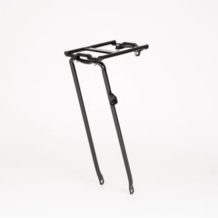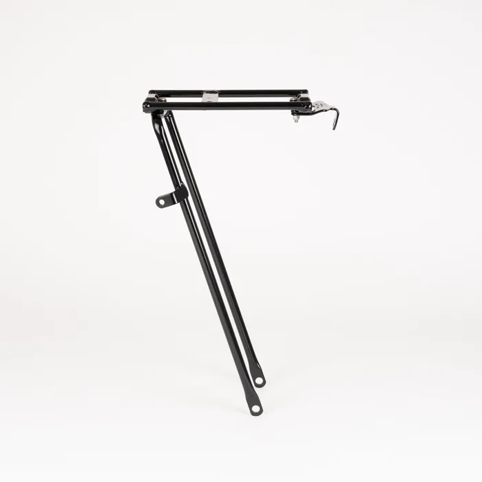 Frampakethållare i aluminium med intergrerad AVS. Montering på gaffel och hjulaxel.För 28" hjul. Svart. Maxlast 10 kg. Vikt 480 gram.