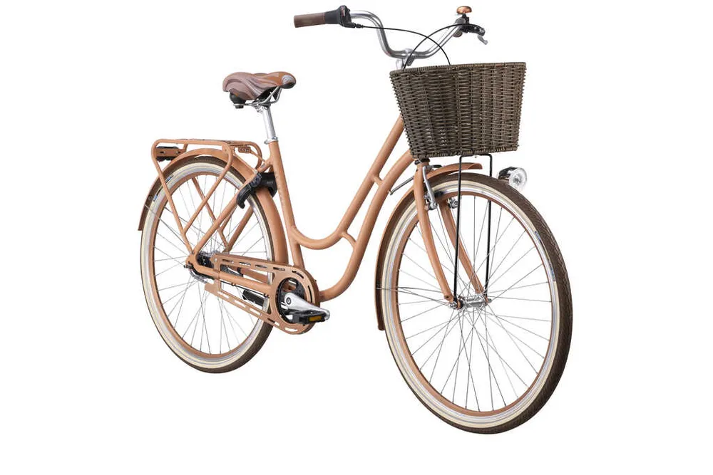 Designen känns igen genom den utmärkande svängda hängmatteramen som skapades för över hundra år sedan och som varsamt uppdaterats genom åren. Tjocka däck som rullar skönt och lätt gör varje tur på denna cykel angenäm. En bekväm sadel och ergonomiska handtag gör Karin till en skön cruiser, på väg hem från festen, på utflykt eller till jobbet. Rejäla skärmar i plåt, pakethållare, lås, stöd, ringklocka, reflexer och belysning, gör sig denna cykel i alla väder och oavsett kläder. Med korg fram och praktiska AVS-klickfästen för korg, låda eller väska på pakethållaren, får du med dig allt du behöver. Vikt 17,8kg